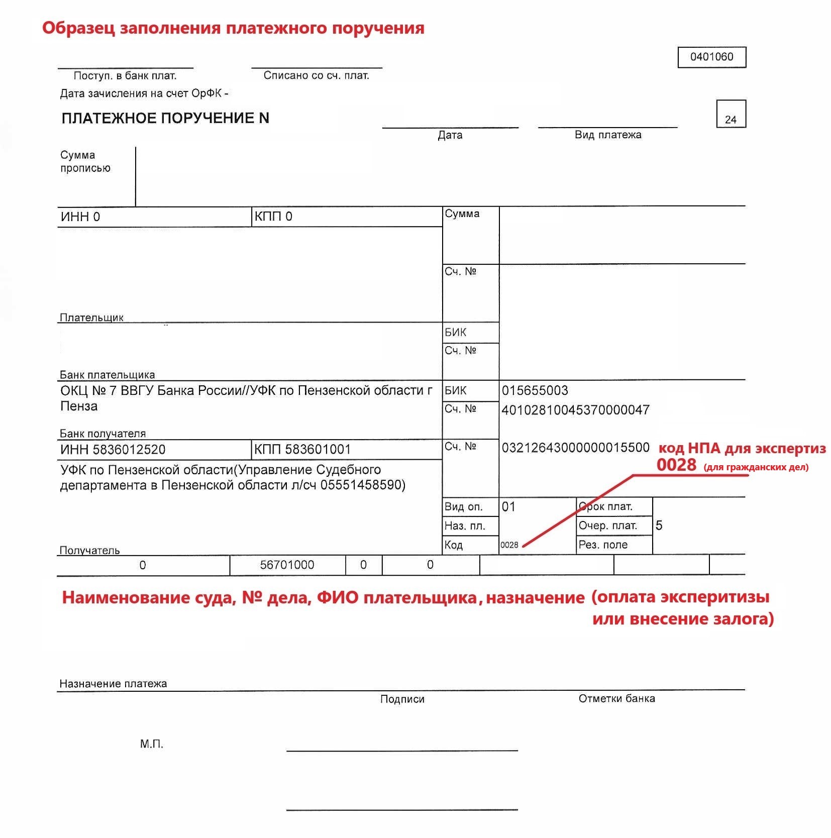 | ОБРАЗЕЦ заполнения платежного поручения для перечисления на депозит | версия для печати |